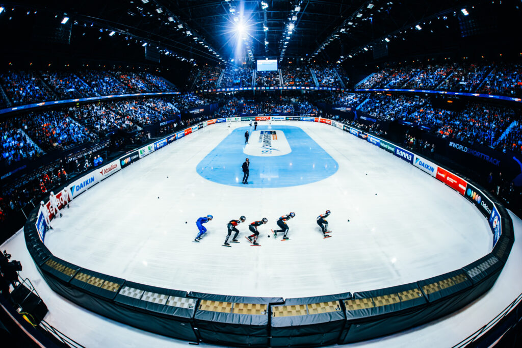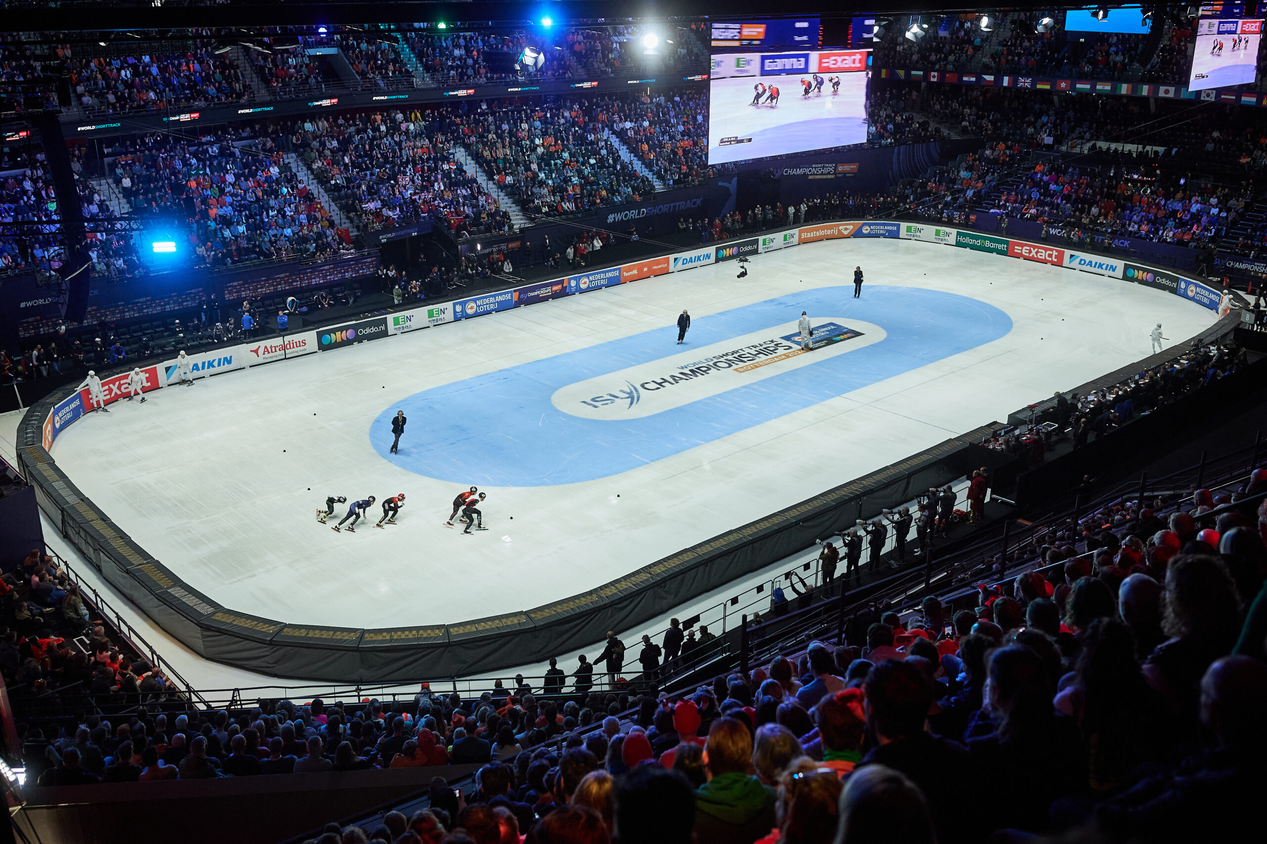 No pop stars this time, just the world’s fastest short track skaters battling it out in a roaring Ahoy arena. For Live provided the setting for the biggest short track event on the planet, second only to the Olympics.